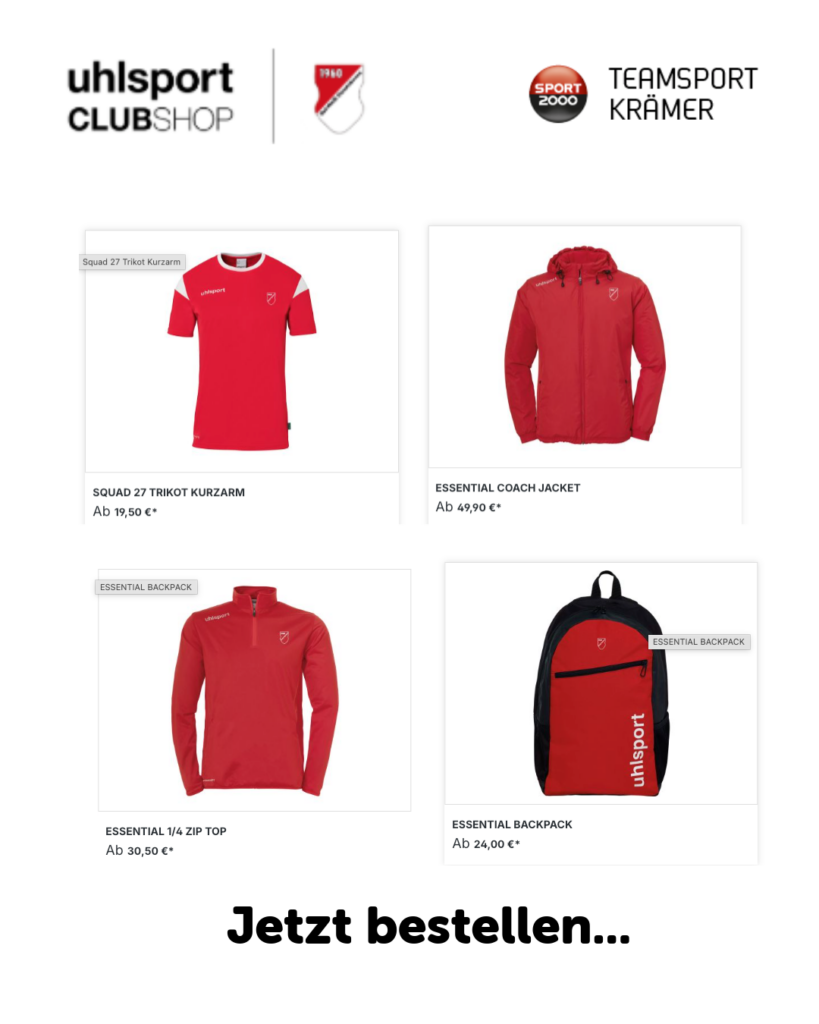 In Kooperation mit Teamsport Krämer und uhlsport haben wir ab sofort unseren Online-Shop geöffnet. Nach und nach werden wir das Angebot ausweiten, auch entsprechend euren Wünschen. Schaut mal rein. ![]()